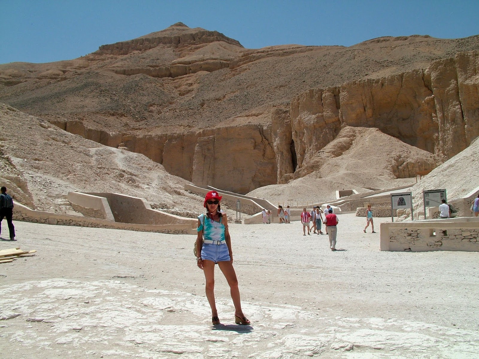 Od Kolosów Memnona już tylko kilka minut jazdy i znajdujemy się w Dolinie Królów. Tu dopiero jest upał. Dolina otoczona górami nie daje żadnego przewiewu, słońce grzeje, a powietrze stoi w bezruchu... Czyżby przedsionek piekła???