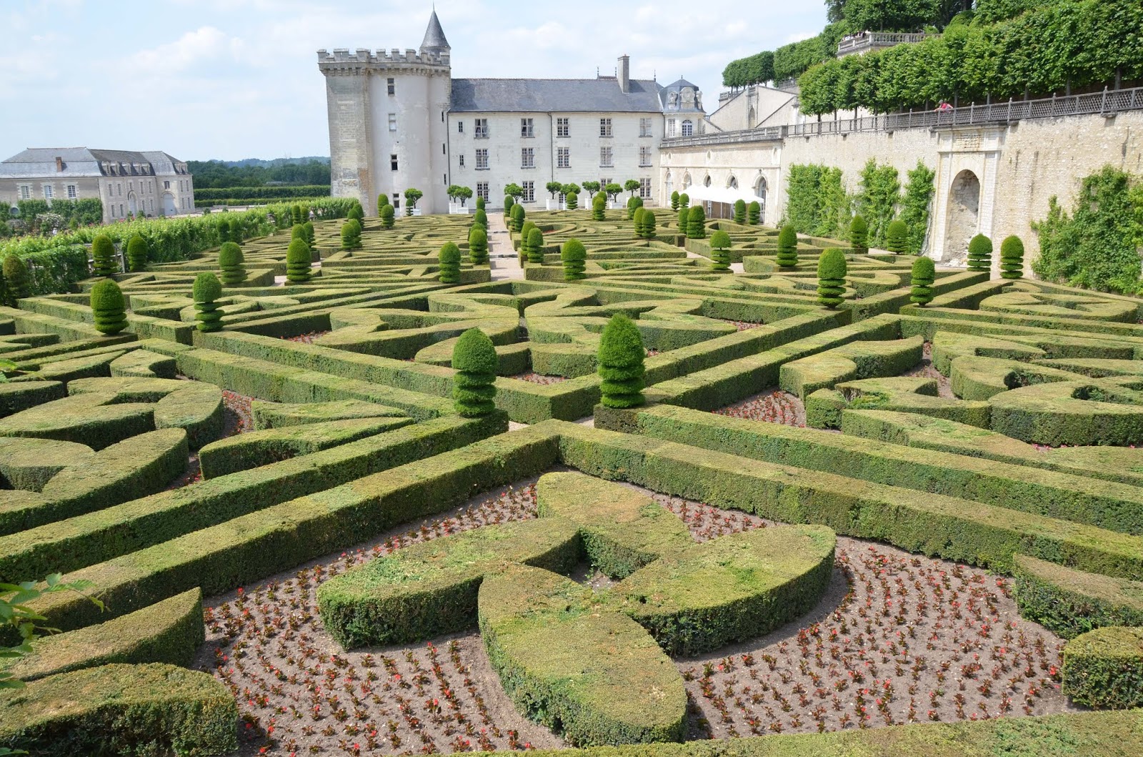 I tak trafiamy do renesansowego warzywniaka i po prostu szczęki opadają nam do ziemi. Czegoś takiego nie widzieliśmy nigdy wcześniej. Ogród warzyw i róż... Symetryczne grządki marchewki, pietruszki, kapusty czy buraków, a między nimi różne odmiany róż. Połączenie klasztornego ogrodu i włoskich wpływów wzbogacających ogród warzywny o elementy dekoracyjne jak fontanny, pergole czy altanki. Tego typu ogrody opisał J. Androuet du Cerceau, XVI-wieczny architekt i to jego prace stanowiły inspirację dl Joachima Carvallo gdy na początku XX w tworzył swój ogród. Dokładny plan warzywniaka przedstawia zdjęcie poniżej...